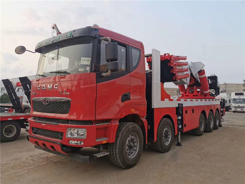 底盤配置:五橋 重汽豪沃,重汽380馬力,10檔變速箱,9噸前橋,16噸后橋,1200鋼絲胎,總質量50噸,共告型號:CLW5501JQZZ5,整車長度11.5米